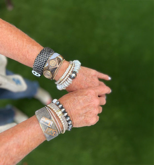Each cuff is thoughtfully made to honor stories, memories, and moments that matter. Whether incorporating sentimental fabrics, meaningful engravings, or vintage textiles, every piece is crafted with care to create a wearable keepsake that connects past, present, and future.